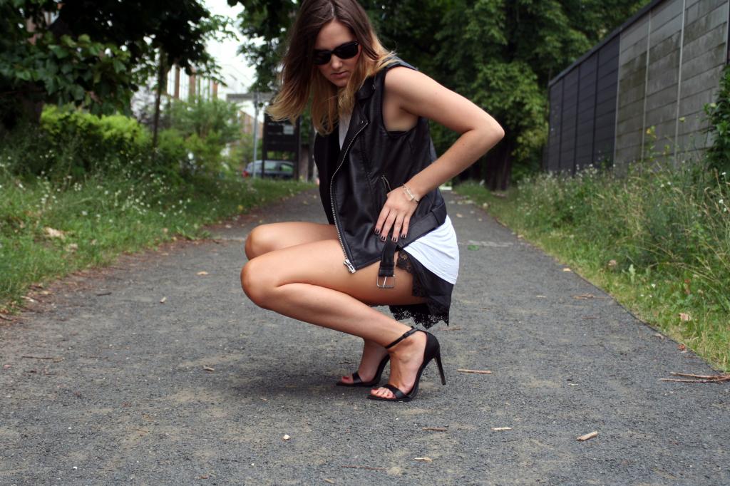 Finally wearing my new Bershka shorts. Love the silky material which just feels really nice on the skin is very comfy and looks great with something rough such as my leather vest. To finish the look and bring some femininity back in the outfit I chose my Zara heels.