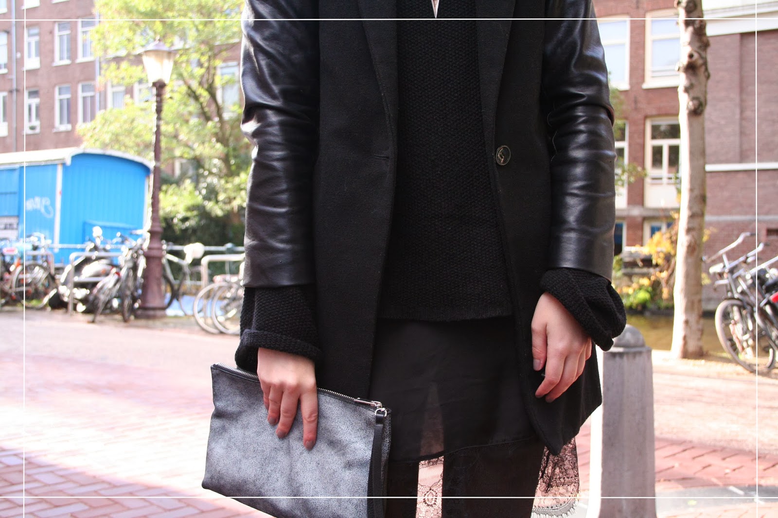That is a typical way how I transform my summer clothes like this delicate slip dress into a outfit for autumn or winter. Just throw over a chunky knit and a coat, put on some tights and top it off with boots. Have a great start in the new week!!